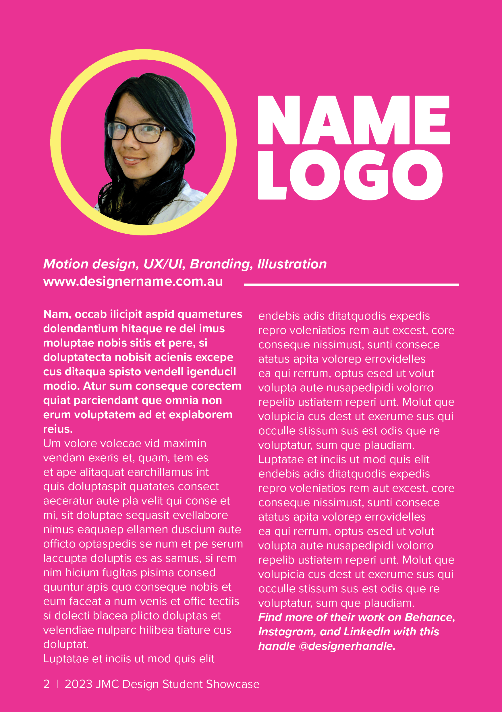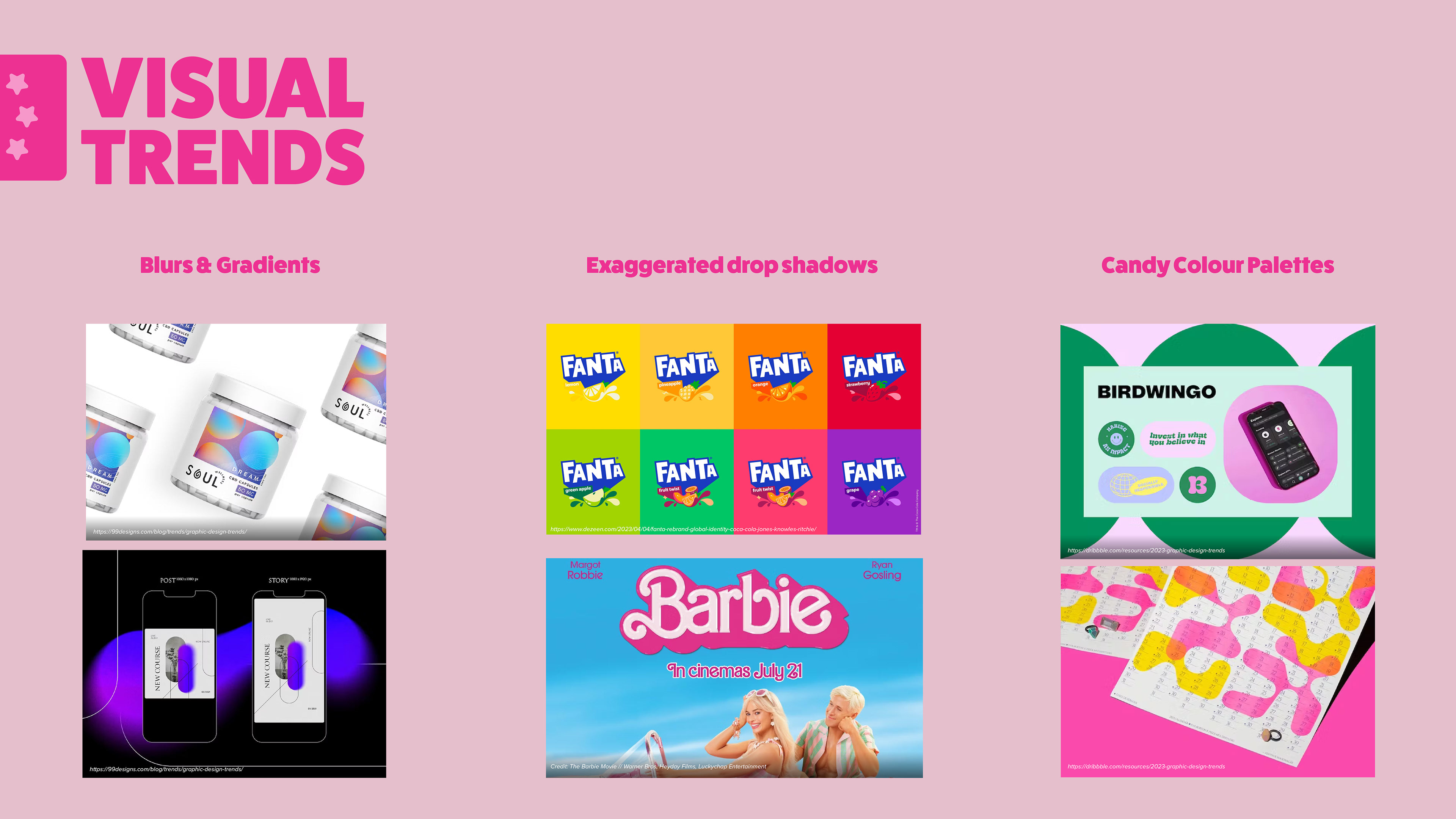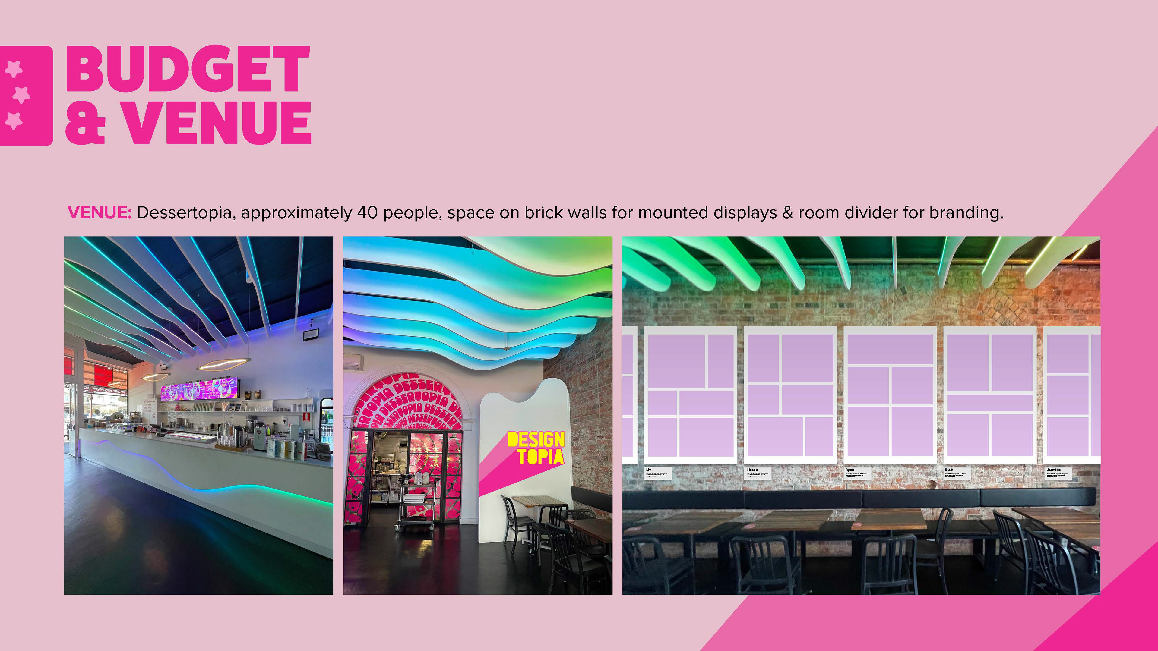 We were briefed with creating a branding and marketing pitch for the graduate student exhibition at Dessertopia. After brainstorming as a group, and completing group or independent market research, I based the theme after the Barbie Movie branding. The heavy dropshadows were iconic in 2023. This pitch won and the brand was further developed for the exhibition and promotions by our senior lecturer and our other design students then also used by the Sydney cohort.